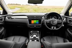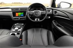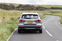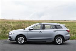 The exterior styling, which was unchanged with this 'Long Range' model, is restrained and conservative and not particularly suggestive of a budget brand. In profile, a crisp shoulder line runs above the door handles, with lower creases that give the flanks some shape. A set of 16-inch 'Meteor' alloy wheels were standard and silver roof rails decorate the plusher 'Exclusive' version. Whichever variant you opt for, you certainly get a lot of metal for the money. This MG5 is 4.54m long, which, to give you some perspective, is about 100mm shorter than a Ford Focus Estate, though this MG's 2.6m wheelbase is only 43mm shorter than that Ford's. This Chinese contender is 1.82m wide and 1.54m tall too. Up-front, the specialist motoring press has been a bit disparaging about the cabin ambiance, but it's actually not that far off volume brand standards, without feeling especially plush - even in the top 'Exclusive'-spec variant with its white-stitched leatherette upholstery. MG tried to meet the current prevailing class standard for infotainment too with a 8-inch centre monitor. It'll usually display in a split screen format, with audio, navigation and Apple CarPlay options easily accessible. Anything else you might need to know can be found in the instrument binnacle, which combines a central 7-inch screen with (rather curiously on an electric vehicle) outer analogue dials, the left one for speed and the right being an EV Power Meter. When the ignition is fired, the outer edges of both analogue dials are completed by the edges of the centre screen, with a green battery % graphic on the left and a blue voltage display on the right. On the back seat, there's ample headroom and legroom, even for taller occupants. And you could fit three adults in without much trouble, thanks to the relative absence of a central transmission tunnel. Finally, this is an estate car, so you'll want to know about boot space, which is rated at 578-litres with the rear seats in place - around the same as a Ford Focus Estate.