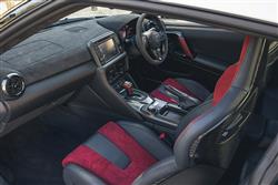 There's nothing subtle about this shape, clearly not Italian, German or American, in every way the definitive Japanese supercar for the X-Box generation. It's an interesting approach, given that Nissan started here with a clean sheet of paper; this was the very first GT-R not based on a mass-market vehicle. The muscular body structure with its perfect 50:50 weight distribution drapes a body structure variously made up of carbonfibre, aluminium and steel that's slipperier than you might think, the 0.27cd drag factor matching that of a sleek Toyota Prius. It might not be pretty but purposeful? Oh yes. Just watch the dawdlers scuttle out of your way. We mentioned carbonfibre. For the money being asked here, you'd probably want that embellishing the bodywork, creating the kind of look that premium supercar rivals charge extra for - and, sure enough, that's what you get. Carbonfibre features for the roof, for the air scoops in the bonnet and for the deep front spoiler, which features red-themed air intakes either side of the lower grille. The upper grille is flanked by LED headlamps. There's more carbonfibre on the huge rear wing and on the elaborate deep diffuser, with its huge twin tail pipes each side. Distinctive 4-ring LED tail lights add a finishing touch. The profile perspective's dominated by huge black diamond-turned 20-inch 'RAYS' forged wheels which feature yellow Brembo carbon-ceramic rotors and calipers and are clad with Dunlop SP Sport Maxx GT600 ultra high performance run-flat tyres with rubber curated to a NISMO-specific compound. Red-trimmed carbonfibre lower side sills, slash-like GT-R slots on the front wings and black mirrors complete the effect. Inside, as you'd expect, there's a very driver-oriented environment. And there's more carbonfibre - around the centre console and even in the instrument binnacle, where the big rev counter dominates the conventional dial layout next to a speedometer rather gloriously calibrated up to 220mph. You sit comfortably on red-trimmed race style bucket seats and there's red-stitched red leather for the gear stick and the door pulls, with further red stitching for the meaty three-spoke sports steering wheel. You'll need to spend ages with the handbook while you figure out all the various buttons and switches but once familiarity dawns, it all works well enough. And the sports seats are brilliant, adjusting amply, like the steering wheel, for both reach and rake. Not so impressive is the old fashioned centre stack screen, which has dated graphics and can also be operated by a rather after-market-looking lower controller. The rear offers seats that even Nissan admitted were best left to kids - with the front chairs set normally, there's virtually no leg space at all. And those adults banished to the rear will be virtually clamped into place by the rear screen above their heads. Still, there's more space back here than you'd find in a 911. And more trunk room too, the 315-litres on offer being nearly three times as much as that Porsche. It's a deep boot too, which makes up for the very high lip you have to lump your stuff over. There are even 6 tie-down points. And there's even carbonfibre-style trimming for the inner part of the boot lid. Unfortunately though, you can't extend the space available by folding the rear backrest.