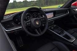 It's easy to assume the styling team for the 911 has the easiest job in the world. After all, essentially the same shape has been used ever since the car was originally launched back in 1963 and that continuity is a big part of its appeal. Actually, the 911 has changed hugely over the decades. This 992-series version was a huge 229mm longer than the Sixties original, while also being 20mm longer and 45mm wider at the front than its 991-series predecessor. You'd know the classic silhouette at a glance of course, but if you weren't a 911 brand loyalist, you might not necessarily notice the changes that designate this eighth generation model. For admirers of this car though, they'll be uber-significant. The door mirrors were re-designed and aerodynamically enhanced to reduce wind noise. The lower section of the nose became more horizontally-orientated, emphasising the 46mm of extra front track width that sharpened up the handling, but there was added a rather an expanse of black plastic across the larger intakes, which was arguably less elegant than before. The rear changes were the most controversial ones. The biggest difference actually wasn't the full-width lighting strip, which by 2019 it had become fashionable amongst the so-called experts to dislike. It actually lay in the fact that with this 992 design, it was no longer possible to have the old classic 'narrow' rear bodywork on rear-driven Carrera models, which some of the cognesenti thought was rather a pity. Arguably more important than any of this was what lay beneath the voluptuous panel work. It seems strange to remember that as recently as the 997-series model, just two generations before this 992, 911s were completely crafted from old fashioned galvanised steel. With the 992, apart from the front and rear aprons, the outer skin is entirely made of aluminium. With this 8th generation 911, the interior entered the digital age. Just as it did in the very first 911, the dashboard flows in an unbroken span across the entire width of the interior and feels luxurious, contemporary and extremely stylish. Through the grippy three-spoke wheel lay a defiantly analogue central rev counter, without which a Porsche simply wouldn't be a Porsche. But the two 7-inch read-outs that sat either side of it were actually configurable freeform displays. Just about everything else you needed to know was covered off by the generously-sized 10.9-inch flush-mounted 'Porsche Communication Management' touchscreen display in the centre of the dash. This monitor was of course also multi-configurable, its homescreen based around personalisable 'tiles' you can move about rather like files on a 'desktop' screen of a PC. We could go on and on about infotainment and connectivity here by talking about things like the added 'Track Precision' and 'Road Trip' Porsche apps; and the fact that this car could be permanently online thanks to its integrated LTE-compatible SIM card, which made possible features like 'Radio Plus', an online radio system that seamlessly cuts in if when listening to a station, you leave the range for terrestrial FM or DAB reception. But we won't do any of that because there's lots else of even greater importance to brief you on. The seats for example, which were completely revamped with lightweight construction. In this 992, they place you 5mm closer to terra firma than before and are even more supportive, with a wider base cushion and a backrest that's 20mm higher. With most rival super sportscars from this period - Audi's R8, Aston Martin's Vantage, the Mercedes-AMG GT and McLaren's 540C for instance - this is where we'd be finishing our discussion on the cabin, but the 911 has its reputation as the most practical model in its class to uphold. Hence with this 992 the continued inclusion of the two small rear seats that you had to do without in the brand's 718 Cayman and Boxster models. It's predictably very cramped when you're sat in them, but you'd put up with it in preference to a rainy walk back from the pub - and two small children would be fine over relatively short distances. Porsche redesigned these rear pews with a wider seat cushion and a backrest that's 20mm higher, but they still leave you in an uncomfortably upright position and of course there's next-to-no legroom. The mid-engined configuration of Porsche's 718 Boxster and Cayman models frees up space for a rear boot compartment but of course with the twin turbo 3.0-litre six slung out the back, you don't get that with a 911. Just a little flap that rises to reveal an engine plaque and access to various service reservoirs. That means anything you can't fit inside therefore has to go in the compartment beneath the sculpted bonnet. This is 132-litres in size regardless of your chosen 911's rear-driven or 4WD status.