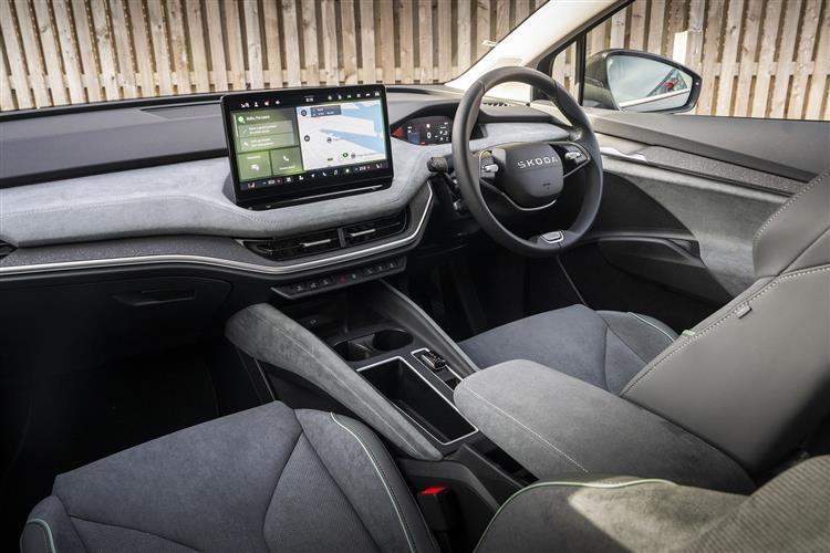 To expect engaging driving dynamics from a car of this kind is clearly over-optimistic; realistically no Enyaq weighs in at under 2-tonnes. To hope for journeying refinement is a little more realistic; aided by its now-sleeker bodywork, this improved Enyaq serves up plenty of that. As for ride quality, well as we said in our test of the smaller Elroq, it's pretty good by class standards - but could be so much better if body control wasn't so tightly reined-in to satisfy the industry press. You'll hear more positive comments about Enyaq ride quality elsewhere, but that's usually because the testers concerned have been in a version of this car fitted with the DCC adaptive chassis control system that hardly any customers will specify. The name 'Enyaq' is apparently derived from the Irish word 'Enya', meaning 'source of life', the source in this case being the same two-way choice of 63 and 82kWh battery packs that power mainstream versions of all the other mid-sized VW Group EV Crossovers using this conglomerate's bespoke MEB electrified platform. Which are also pretty much the same as the packs used on the earlier version of this model - as are the electric motors they power. The smaller 63kWh battery pack (which can't be had on the Coupe version of this car) features in the base 60 model allied to a 204PS motor which takes you to 62mph in 7.8s or, if you're more restrained, offers a range of up to 268 miles. We tried a mid-level 85 model with the larger 82kWh pack which works with a 286PS motor, this combination delivering a sprint time of 6.5s and a range figure of up to 359 miles. Further up the line-up lie the 82kWh AWD dual motor variants; the 85x model with 334 miles of range. And a top vRS variant that offers 340PS, 0-62mph in 5.2s and 347 miles of range. Since your budget will probably restrict you to a single motor model, that's what we opted to try. In case you're not familiar with VW Group engineering in EV of this size, it's worth pointing out that, unlike quite a few rivals, the motor in question sits on the rear axle rather than the front one. Which prior to this Enyaq's introduction was a format we hadn't seen in any Skoda since the '70s. Here, it allows for a turning circle that at just 9.3-metres is so impressive that you might wonder whether this car has 4-wheel steering (it doesn't).
