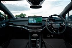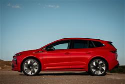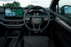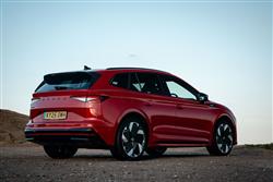 This Enyaq vRS gets the largest available battery that can be fitted to Volkswagen Group mid-sized EV models of this sort - 84kWh in size, slightly larger than the 82kWh battery pack usually fitted to longer-ranging Enyaqs. That energy source is matched with an uprated version of the dual motor AWD powertrain that also features in slightly less powerful form in the Enyaq 85x. In this case though, instead of the 286PS output of that car, you get 340PS (up from 299PS with the original version of this model) and a whole heap of torque - 545Nm from the main motor at the rear and a further 134PS from the added motor at the front. As a result, this vRS takes only 5.2 seconds to sprint to 62mph (1.1s quicker than the pre-facelift model), on the way to a limited top speed of 111mph. Driving range is 344 miles (actually 26 miles more than the earlier car). What you don't get from this vRS are really engaging drive dynamics, this model suffering mainly (like many similar EVs) from heavy weight and anaesthetised steering. Still, like its lesser siblings, this SUV is superbly manoeuvrable for its size, jinking through traffic hold-ups and darting into spaces. As with other electric vehicles, this one's town travel is characterised by its need to constantly emit a strange 'e-sound', intended to warn pedestrians of its impending approach. You wonder though, why it's necessary for this feature to sound so other-worldly; other brands use film composers to create more pleasant melodies. Beyond the city limits, traction is impressive but there's a little more body roll through the turns than you'd get with the alternative Volkswagen and Audi versions of this VW Group design. The pay-off for that though, is a much better standard of ride, with suppleness over poor surfaces and speed humps that's un-bettered in this class and is far superior to most rivals.
