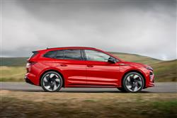 British buyers have always liked Skoda's vRS performance badge. The Czech maker even calls this 'a love affair'. Well that affection has been tested by this car, the Enyaq vRS. At its original launch back in 2023, first in this conventional SUV form and later followed by a sleeker SUV-Coupe version, it was by far the priciest Skoda the brand had ever brought to sale, taking the fast EV mechanicals we'd already seen in top versions of Volkswagen Group mid-sized Crossover coupe electric vehicles like the Volkswagen ID.5 and the Audi Q4 Sportback e-tron. This Skoda though, delivered them with more of a performance vibe. Fast forward to Spring 2025 and we got the updated Enyaq vRS model we're going to look at here, again available in the same two body styles. The front end look's a little different and the battery powertrain's slightly tweaked but essentially, everything's still much as it was. Let's take a closer look.