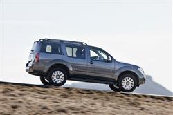 There's often a substantial gulf between the way 4x4 buyers actually use their 4x4 vehicles and the utopian visions laid out in commercials and publicity material. The ad men present the public with a rose-tinted vista of family life in which every spare moment is crammed with wholesome outdoor activities from horse riding, to mountain biking and rambling to kite flying. Of course, the 4x4 vehicle itself is the hero of the piece: always on hand to be loaded with beaming children and expensive equipment, ready to trundle off into the countryside at a moment's notice. Nissan's Pathfinder 4x4 certainly has the ability to access remote locations with a family of catalogue models and their camping gear safely stowed inside but it's also adept on the school run, on the motorway and in the supermarket car park - the places where real people are most likely to use it. The Pathfinder range is split into three trim levels named Trek, Sport and Aventura. Until 2008, the entry-level Trek models did without the rearmost row of seats and so offered a five-person capacity but all other Pathfinders had the ability to seat seven. Externally, the Nissan family face, as seen on 4x4 models across the manufacturer's range, is very much in evidence. The V-shaped grille with central Nissan badge gives a suitably imposing frontal view, one which is accentuated by a wide air intake in the underbumper and bulging wheelarches. As you ascend the range, more styling features are added to spruce-up the vehicle's appearance, 'Pathfinder'-branded roof rails help, as do front fog lamps and side steps. Overall, it's a cohesive and modern, if somewhat unremarkable, design which lacks the impact you get with a Discovery but certainly isn't going to offend many people. The interior decor is tidy and largely functional, although there's little by way of design flair in evidence. The air-conditioning is controlled by dials that rock from side to side: these are unusual but they seem highly counterintuitive and don't really represent an improvement over traditional twisting dials. Leather upholstery is standard on Aventura models but the cloth trim on lower spec derivatives has a netting-like texture and may prove difficult to clean once your kids have melted a chocolate bar to it. The Pathfinder is available with a variety of nice technological features including Nissan's excellent Birdview satellite navigation system, a colour reversing camera and keyless entry but even the base models feature dual-zone climate control, electric heated mirrors, electric windows, ESP and traction control.