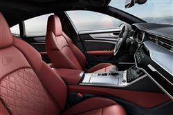 You'll buy this car because of what it says about its brand and because of what it says about you, with a look that's measured, efficient, sporting and quietly exclusive. The long bonnet, the long wheelbase and the short overhangs create perfect proportions, while the swooping roofline is reasonably successful in giving this five-door model the character of a coupe. Subtle, eye-catching details set this MK2 S7 apart from its humbler FK8-era A7 stablemates. The wide, low Singleframe grille features lamellas in aluminium and a centre section in dark chrome matt. The air inlets are enlarged over those normally featuring on an A7, with very bold contours, and their honeycomb-structure inserts are finished in titanium black. The blade running through them is trimmed in gleaming aluminium, as are the exterior mirror housings. Features that distinguish this S7 from its S6 saloon counterpart include the funnels in the air inlets and the angular trim strips on the side sills. The cabin is as well appointed as you'd expect from a range-topping A7 Sportback model, with beautiful monogrammed leather sports seats, and an S-specific graphic layout for the standard-fit Audi Virtual Cockpit instrument binnacle digital display which here features a central rev counter. The back seat offers reasonable space for three adults, but much more comfortable room for two and you get a fold down centre armrest with storage and cup holders. Out back, in this five-door model there's a 535-litre boot, extendable to 1,390-litres.