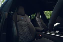 So is this merely an RS 6 estate in a posh frock? Like its showroom counterpart, the RS 7 Sportback certainly looks perpetually ready to wield its sledgehammer performance - its sinewy body virtually hugs the road surface, and its sizeable wheels are shrouded by boldly flared arches that leave no margin for doubt about the mettle of this Audi Sport offering. Inside, there are grippy RS sport seats upholstered with perforated Valcona leather. And you're positioned comfortably in front of a perforated RS sport leather steering wheel with aluminium shift paddles and multifunction buttons, including the RS MODE button, which the driver can use to enable the drive select RS1 and RS2 modes. This automatically opens the RS-specific displays on the Audi virtual cockpit instrument binnacle screen. These provide details of tyre pressure, torque, performance, oil temperature, boost pressure, lap times, acceleration, and g-forces. More screens sit on the centre stack, an upper 10.1-inch display for infotainment and a lower 8.6-inch monitor for comfort features. The driver can use the upper screen to call up an RS monitor that gives an overview of drive system component temperatures, maximum g-forces and information regarding tyre pressures and temperatures. In the rear, unlike the previous generation RS 7, this one is provided with a three-seater rear bench in the interest of maximum versatility. But you're not going to want to use the centre berth unless you absolutely have to because it's so heavily impeded by this over-prominent centre transmission tunnel. Still, provided you focus on the two main sculpted seats, you'll find that the 12mm increase in wheelbase length this time around is enough to make things feel quite a bit more spacious. The powered tailgate rises to reveal 535-litres of space.